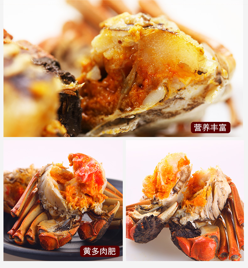 EM大閘蟹個大體肥,肉質肥嫩鮮美,一般三只重500克,大者只重250克以上,最大者可達500克,青背白肚金爪黃毛,十肢矯健,蟹肉豐滿,營養(yǎng)豐富。